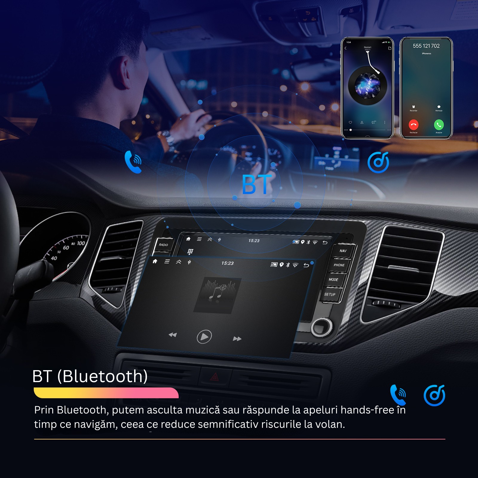 Bluetooth integrat – Permite apeluri hands-free si redare muzica direct de pe telefon, pentru o condus mai sigur.