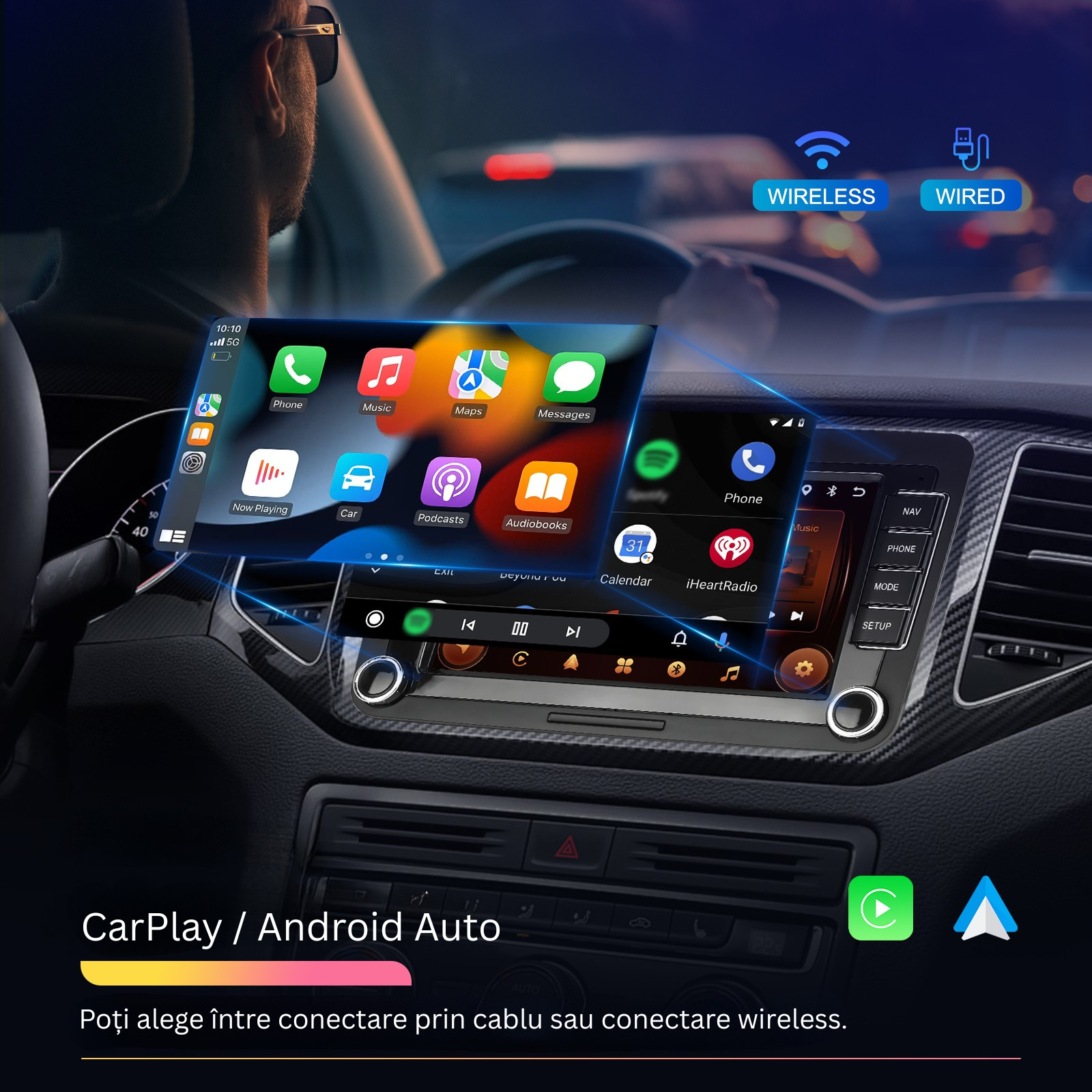CarPlay & Android Auto – Wireless/USB – Conecteaza telefonul rapid, wireless sau prin cablu, si foloseste aplicatiile preferate direct pe ecranul navigatiei.