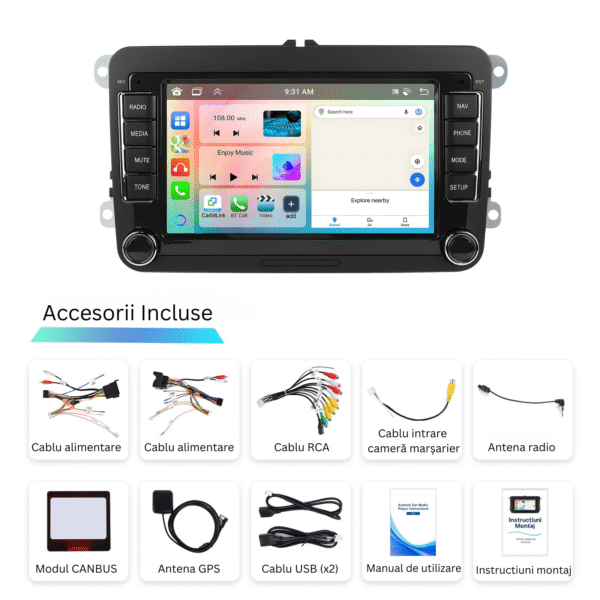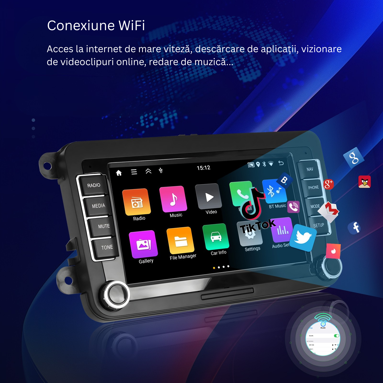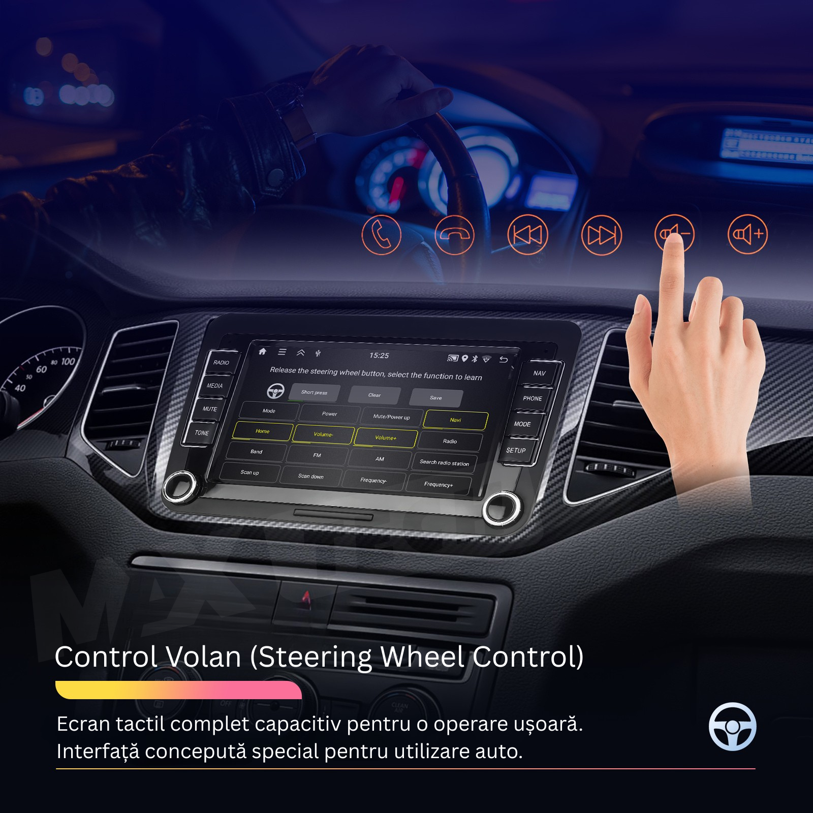 Navigatie Volkswagen / Skoda / Seat Android 15, MaxTech® PRO SERIES, 6GB Ram 128GB Memorie, Carplay & Android auto, Ecran 7” HD Touch, Golf, Passat, Jetta, Octavia, Leon, GPS, Wifi, Bluetooth, Waze
