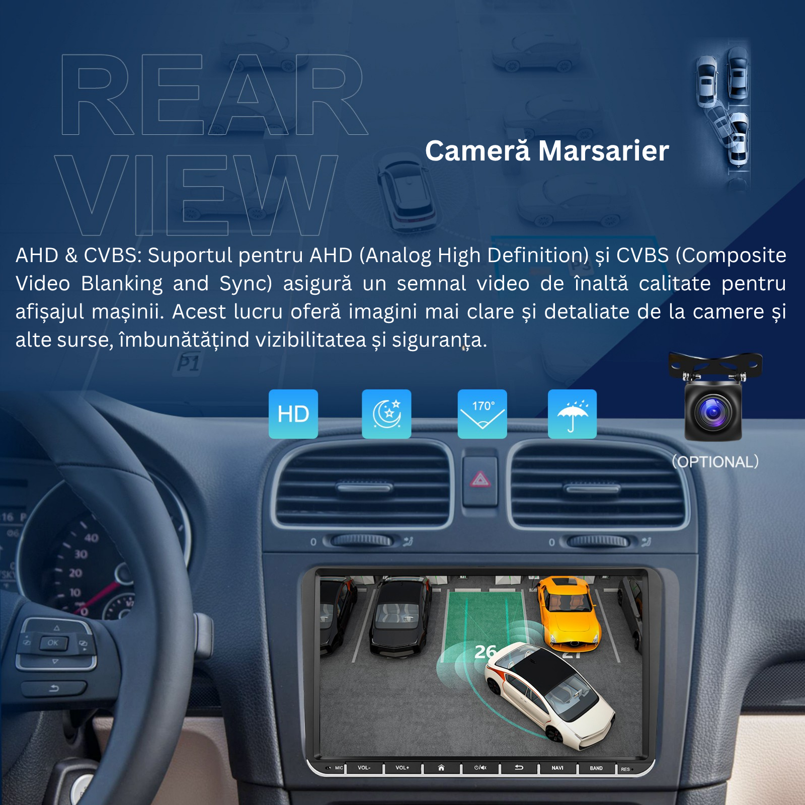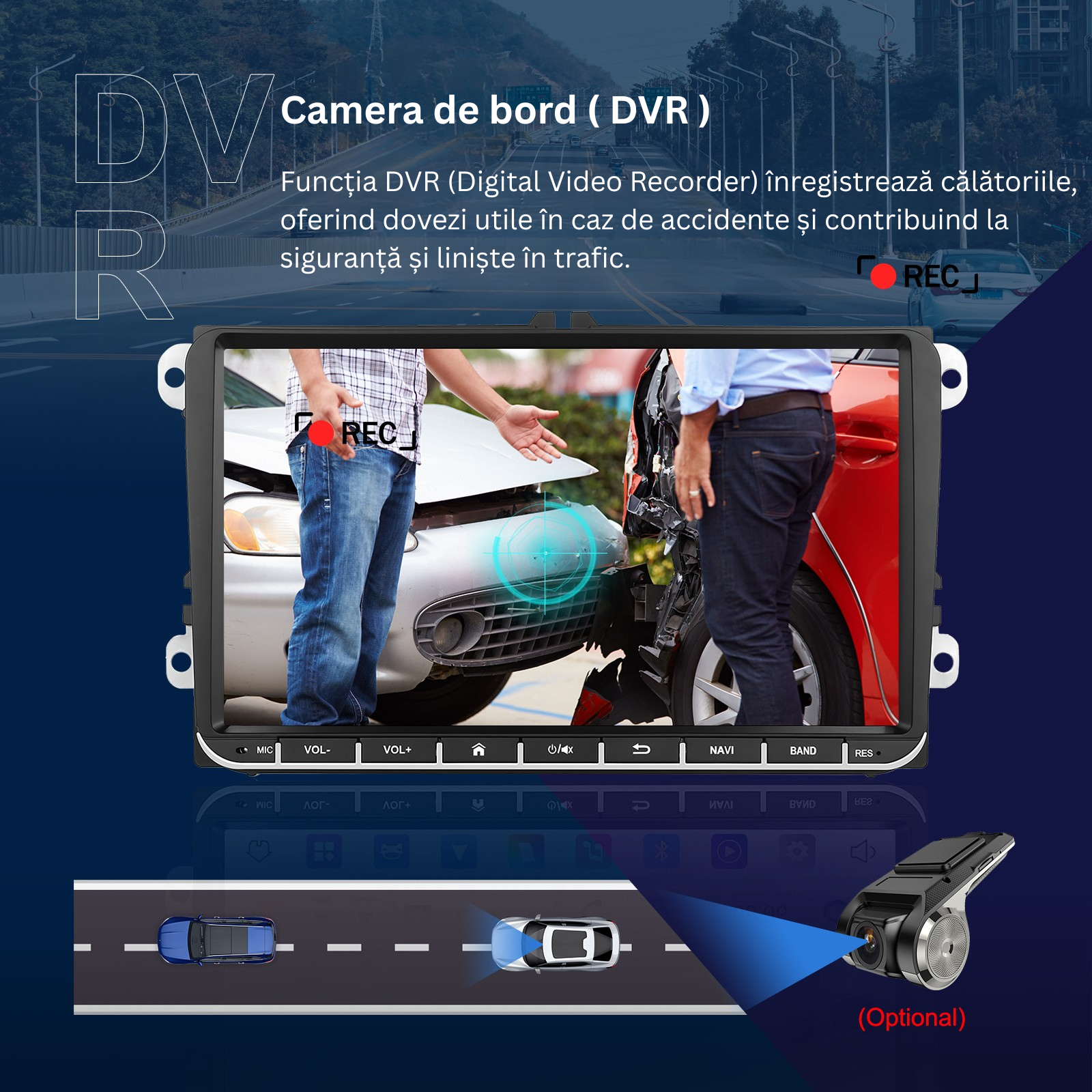 Aceasta navigatie este compatibila cu accesorii externe optionale precum camera de marsarier, DVR si interfata USB – pentru functionalitate extinsa si o experienta de condus completa.