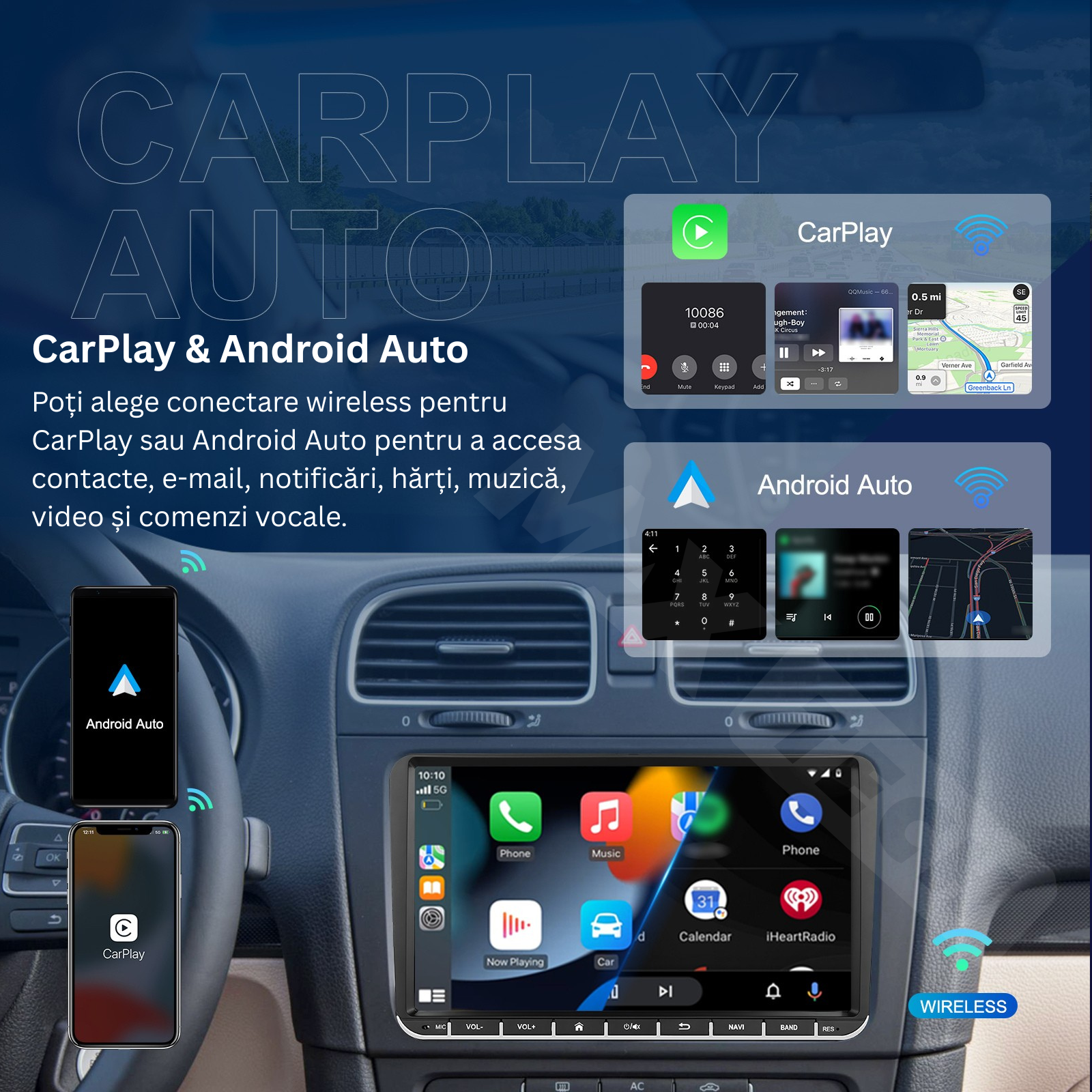 CarPlay – Conecteaza telefonul rapid, wireless si foloseste aplicatiile preferate direct pe ecranul navigatiei. ( ATENTIE ACEASTA NAVIGATIE ARE DOAR FUNCTIA CARPLAY NU SI ANDROID ! )