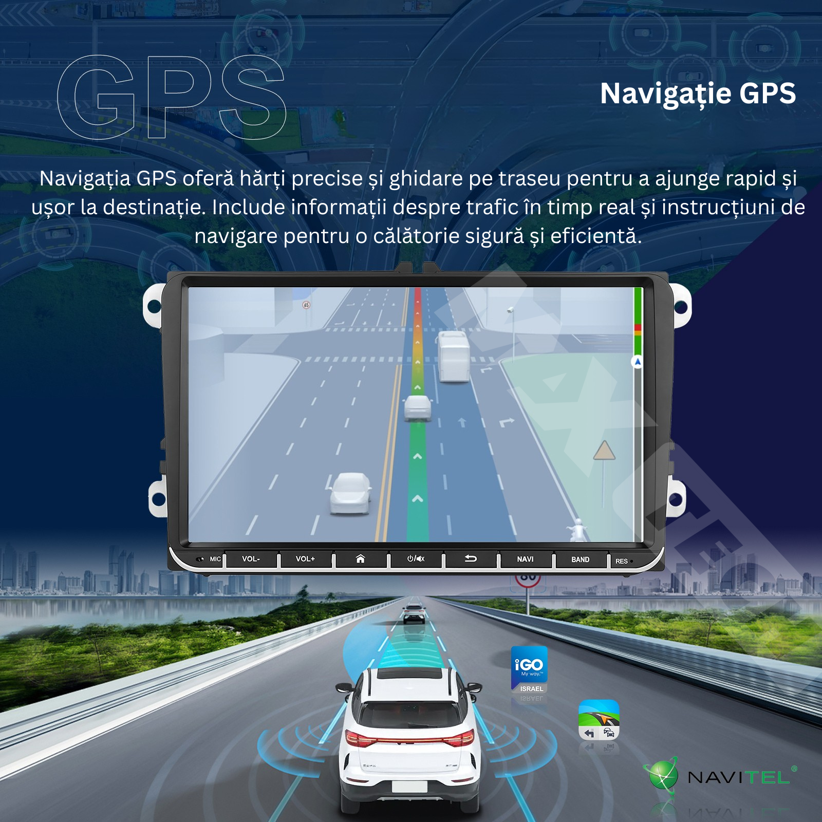 WiFi integrat – Conecteaza navigatia la internet pentru aplicatii, YouTube, muzica si actualizari rapide.
