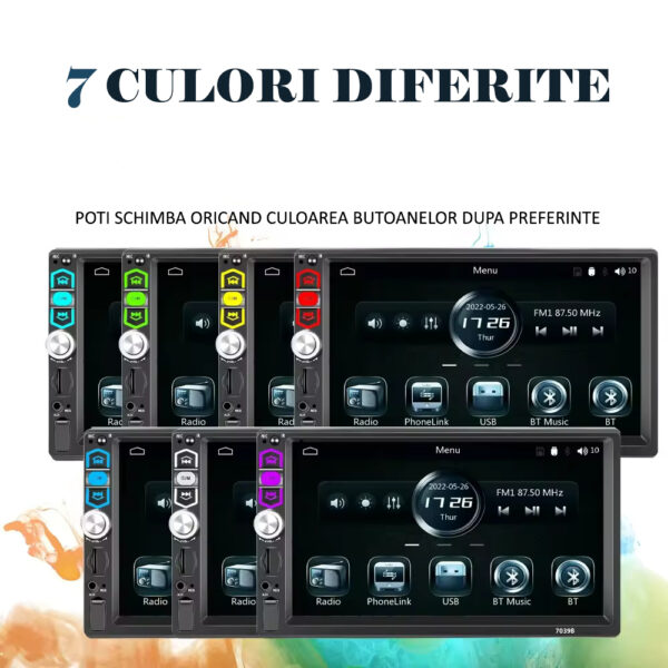 - Player MP5 Multimodal: Reda muzica si videoclipurile tale preferate de pe multiple surse, inclusiv USB si carduri SD, pentru o experienta multimedia completa.