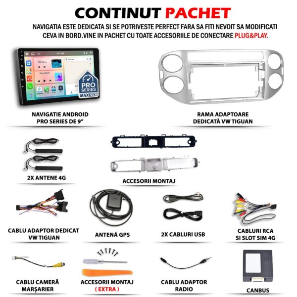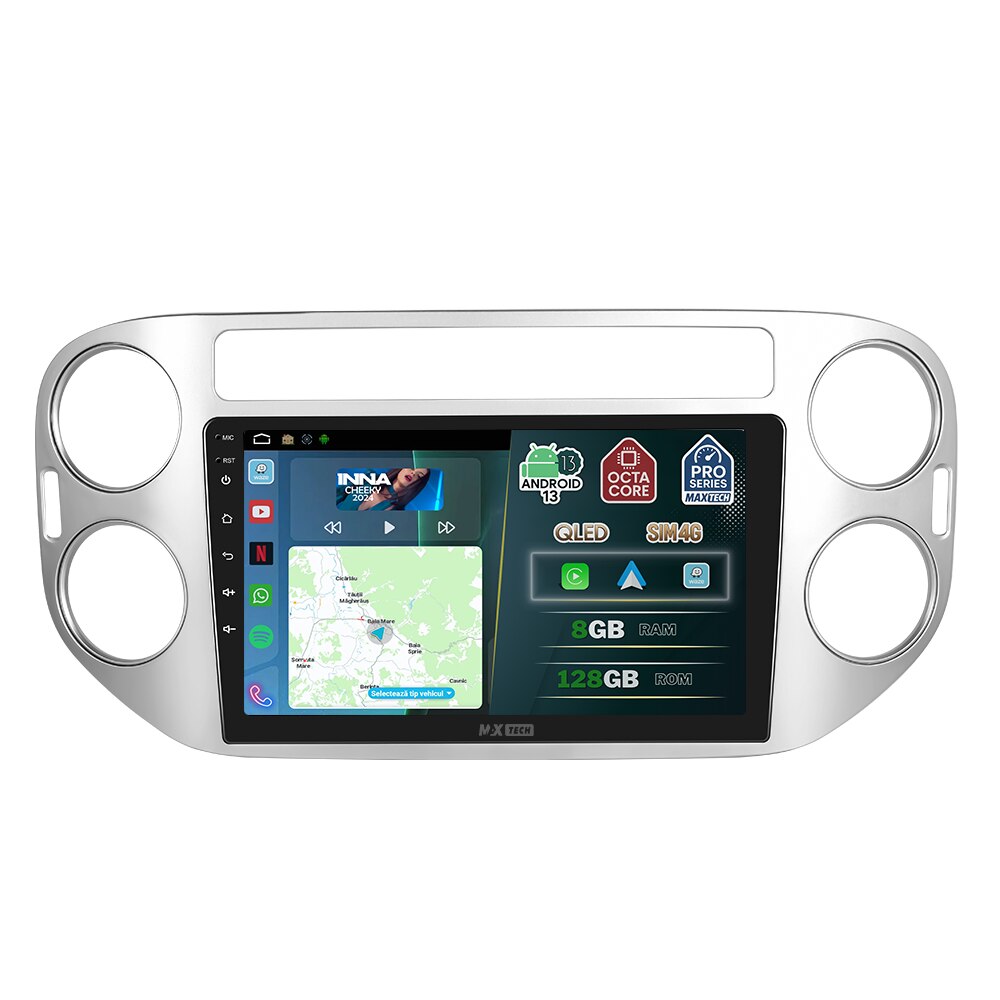 Navigatie Volkswagen Tiguan 2007-2016 dedicata, MaxTech® PRO SERIES, 8 GB Ram 128 GB Rom OctaCore, Carplay & Android auto, Ecran 9” HD Touch, SIM 4G, GPS, Wifi, Bluetooth, Radio, EQ, Waze, Youtube