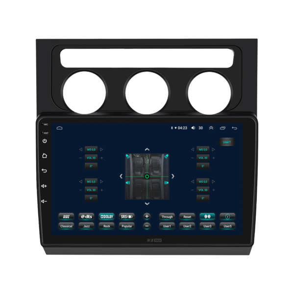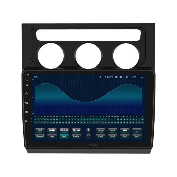 Sistem audio cu suport AM/FM/RDS, transmisie muzica online prin FM. Include equalizator (EQ) pentru ajustare fina a sunetului si filtru activ (Crossover) pentru directionarea frecventelor catre difuzoare dedicate (bass, inalte etc.).