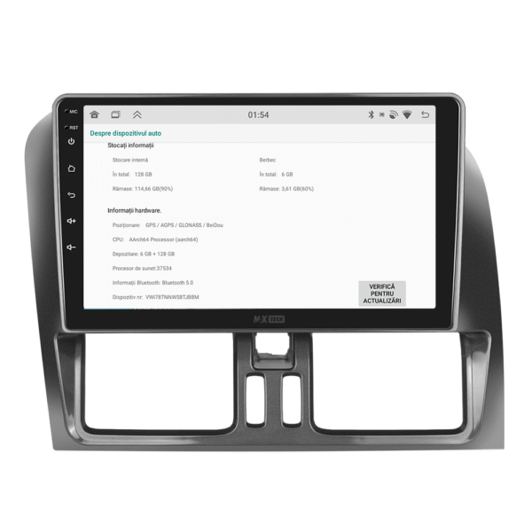Sistemul MaxTech Pro Series este echipat cu un procesor OctaCore de tip 4+4, 6 GB RAM si 128 GB stocare, pentru multitasking rapid. Ecranul IPS HD de 1280×720 ofera culori reale si vizibilitate excelenta din orice unghi, cu design modern 2.5D.