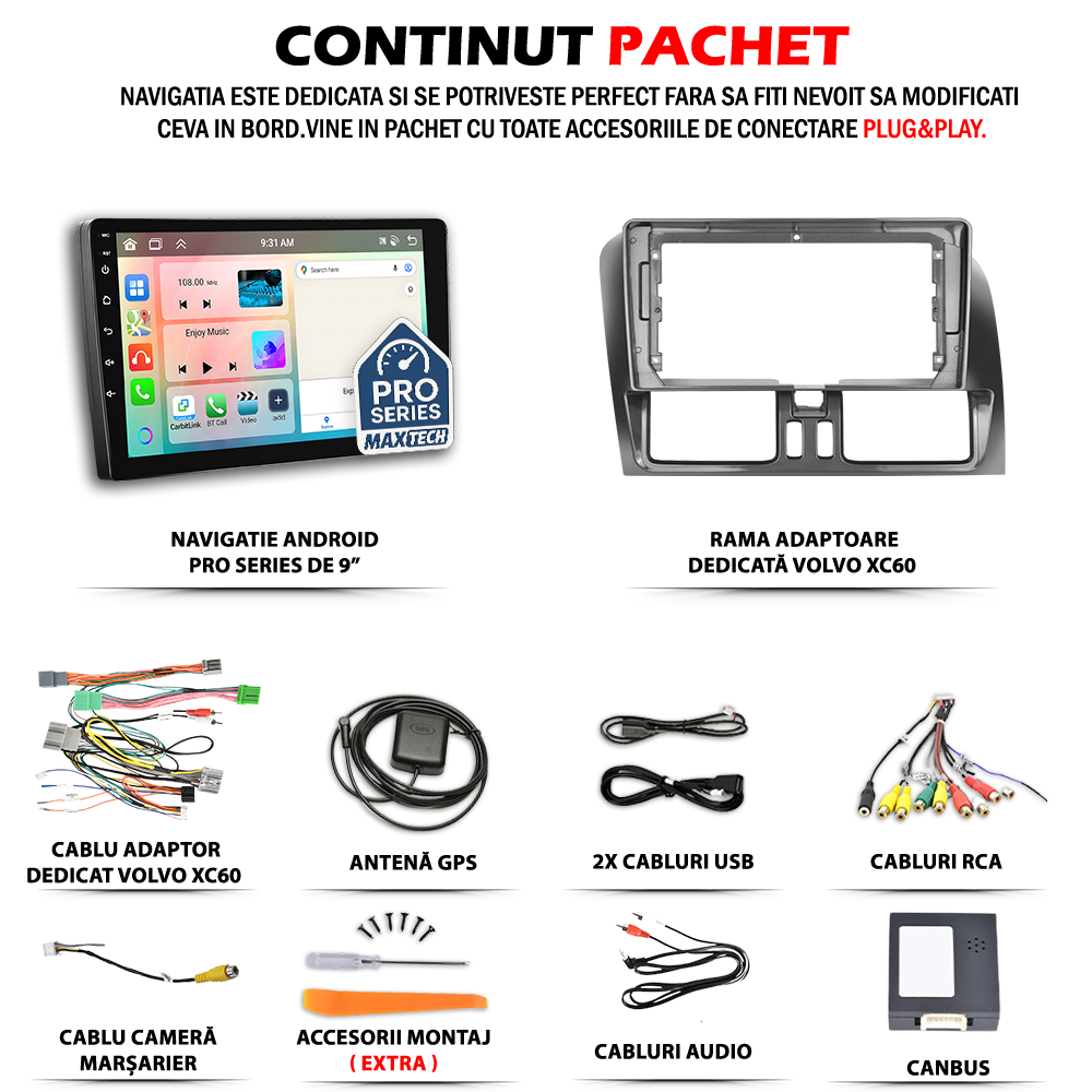 Navigatie VOLVO XC60 2008-2013 dedicata, MaxTech® PRO SERIES, 6 GB Ram 128 GB Rom OctaCore, Carplay & Android auto, Ecran 9” HD Touch, GPS, Wifi, Bluetooth, Radio, USB, EQ, DSP, Waze