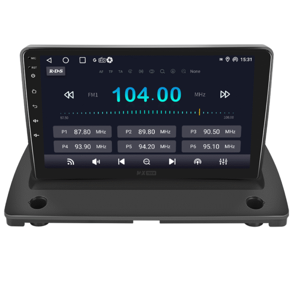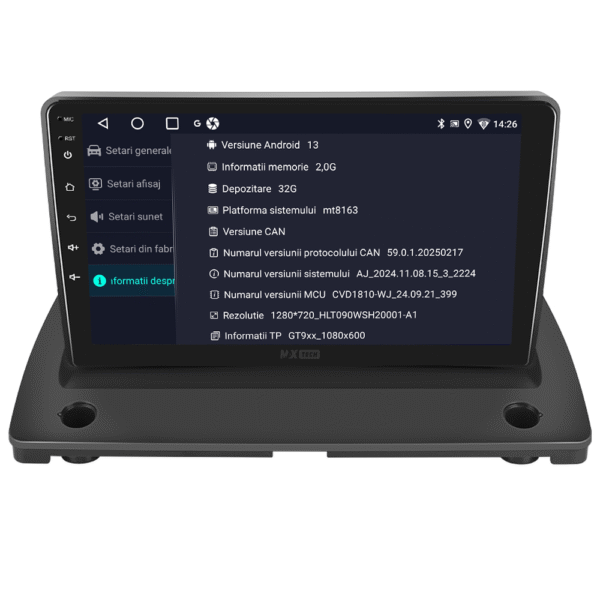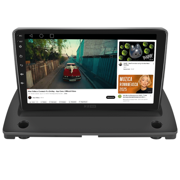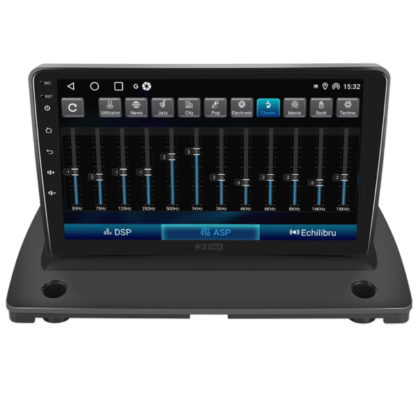 Sistemul include radio RDS cu afisare post si melodie, comutare automata pe frecventa cea mai buna si procesare audio DSP cu egalizator si filtru activ pentru sunet clar, echilibrat si personalizabil.