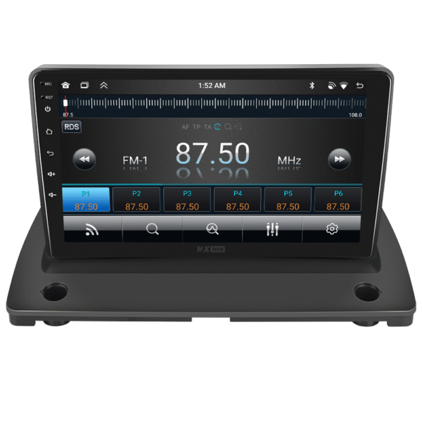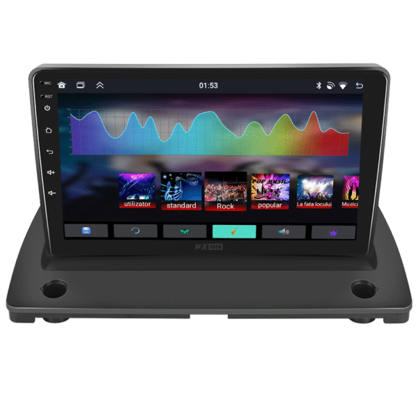 Sistemul include radio RDS cu afisare post si melodie, comutare automata pe frecventa cea mai buna si procesare audio DSP cu egalizator si filtru activ pentru sunet clar, echilibrat si personalizabil.