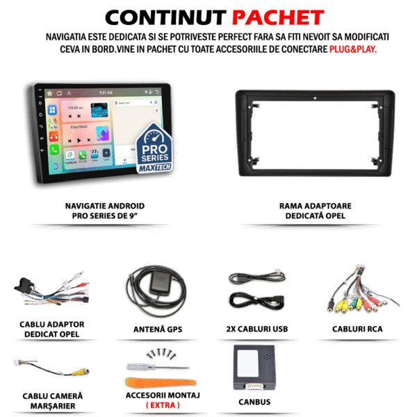 Navigatie Opel Astra H / Zafira B / Vectra C (2004–2014) dedicata, MaxTech® PRO SERIES, 6 GB Ram 128 GB Rom OctaCore, Carplay & Android auto, Ecran 9” HD Touch, GPS, Wifi, Bluetooth, Radio, Waze