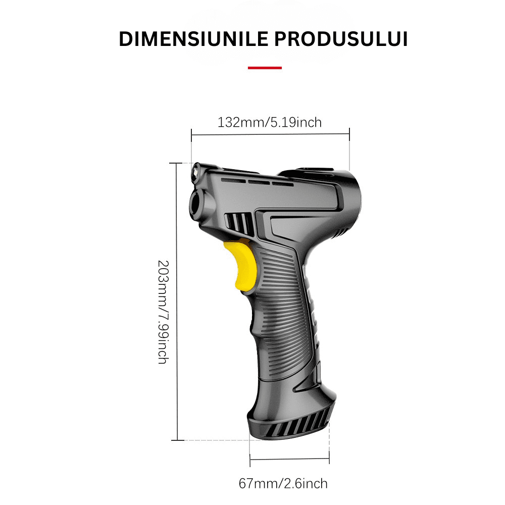 Senzor de oprire automata: Dupa ce se atinge presiunea setata, pompa se opreste automat pentru a preveni supraumflarea.