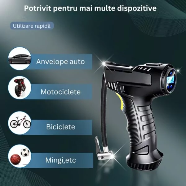 - Alte echipamente care necesita umflare (de exemplu, mingi, saltele gonflabile, etc.).