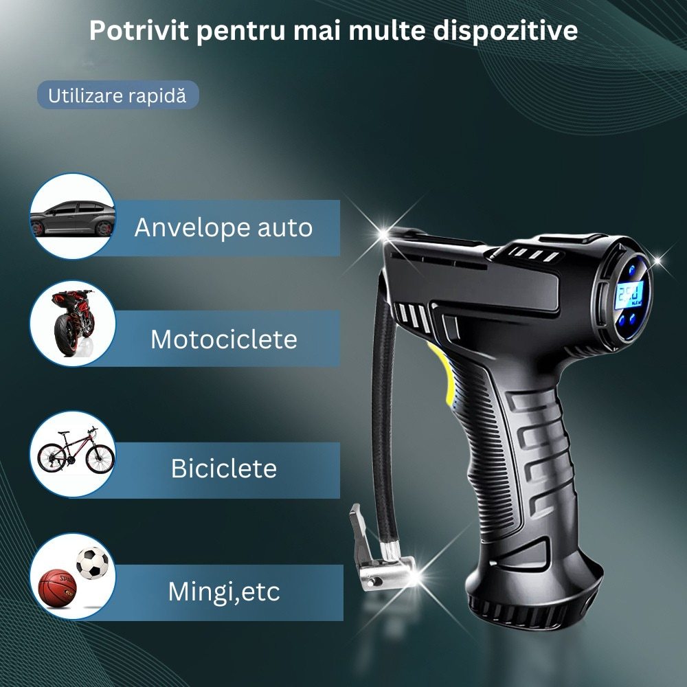 Presiune ajustabila: Posibilitatea de a seta presiunea dorita pentru diferite tipuri de anvelope sau obiecte (de obicei, cu un interval de presiune intre 0-150 PSI).