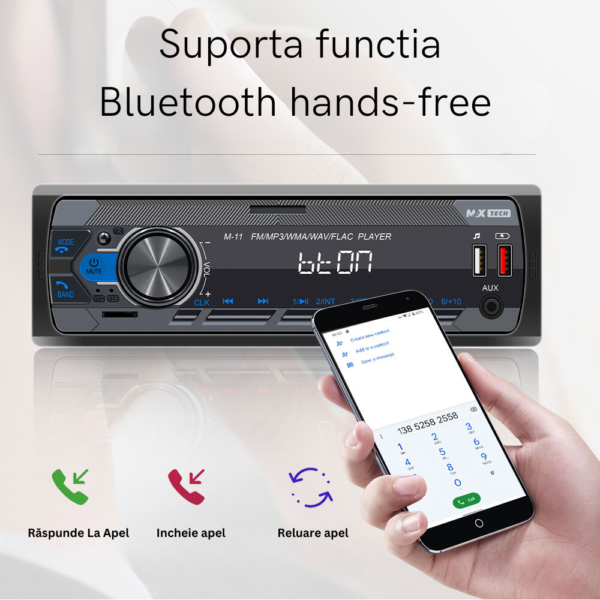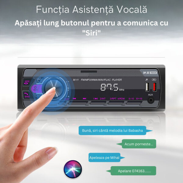Radio mp3 Player, Casetofon auto MaxTech® , Functii Bluetooth 5.0, CardSD,2x USB, Auxiliar, Aplicatie telefon, Asistenta Vocala, Incarcare Rapida, RCA Subwoofer, 7 culori