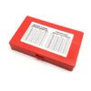 - Depozitare organizata – Fiecare dimensiune este plasata intr-un compartiment separat intr-o cutie de depozitare robusta, etichetata clar pentru identificarea rapida si usoara a fiecarei garnituri. Aceasta organizare eficienta economiseste timp si previne pierderea pieselor.