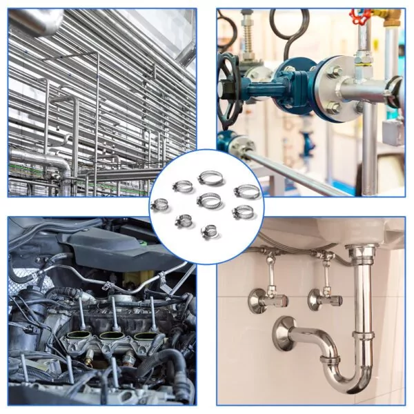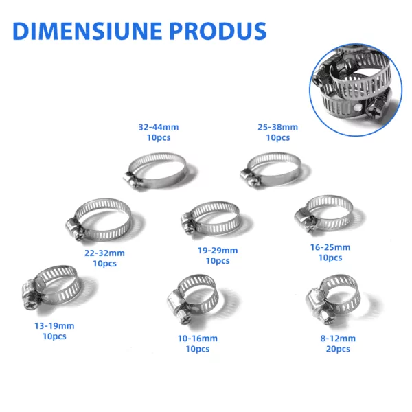 Acest set de coliere pentru furtunuri este realizat din otel inoxidabil de inalta calitate, oferind rezistenta la coroziune, acizi si rugina. Sistemul de strangere reglabil permite ajustarea dimensiunii in functie de diametrul tevii, asigurand o fixare sigura si prevenind scurgerile de lichid.