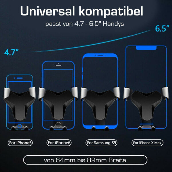 Suportul reglabil asigura compatibilitate cu telefoane ce au latimi intre 7 si 9 cm si grosime de 1.5 cm. Permite fixarea in 3 puncte pentru siguranta maxima. Se adjusteaza singur automat in functie de latimea telefonului fara ca dvs. sa-l reglati. Doar puneti telefonul in suport !
