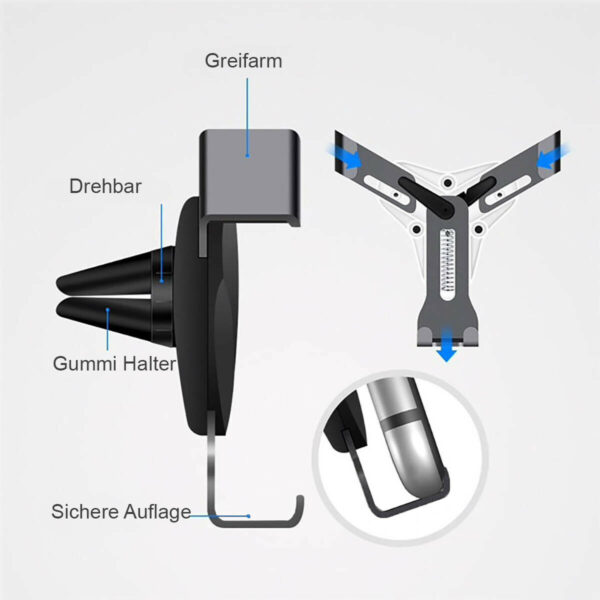 – Acest suport telefon auto este ajustabil si demontabil foarte usor, se roteste pe orizontala la 360 grade pentru o amplasare cat mai potrivita .