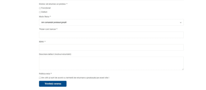 Este necesar să menționați motivele pentru retur, pentru a asigura o procesare mai rapidă a acestuia. Aceste informații sunt importante și vor ajuta la analiza situației de retur.